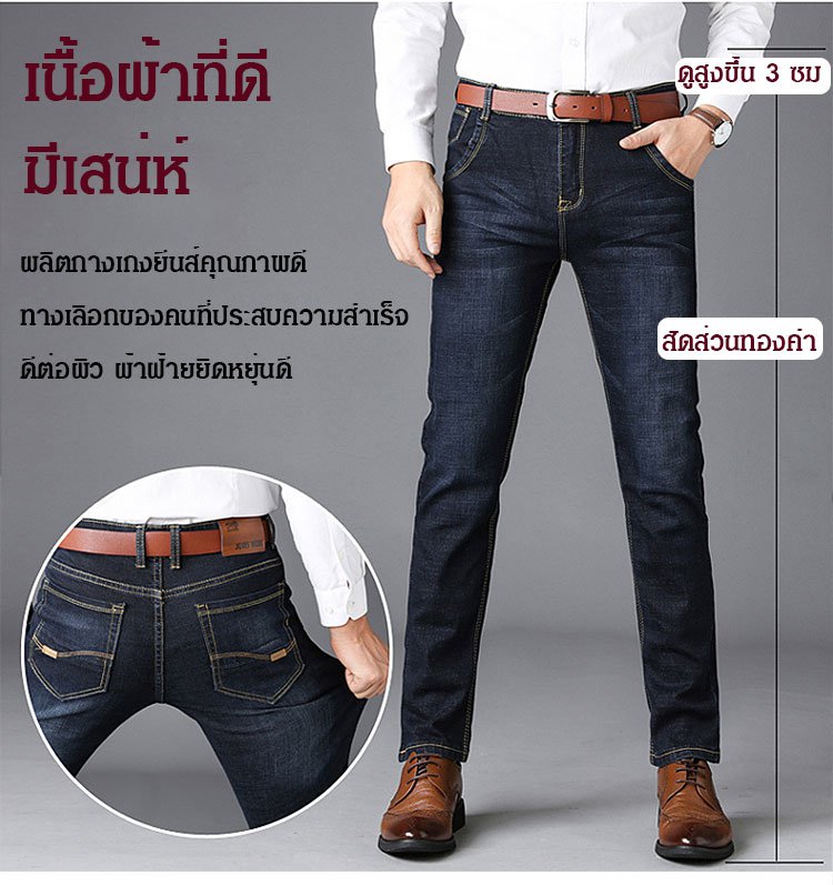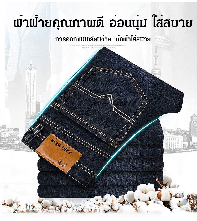 กางเกงยีนส์ทรงกระบอกผู้ชายคุณภาพดี เนื้อผ้ายืดหยุ่น ใส่สบายไม่รัดแน่น สีไม่ตก ไม่เสียรูปทรง สไตล์ธุรกิจลำลอง รับประกันคุณภาพ คุ้มค่า 1 ตัว 899 บาท 2 ตัว 1299 บาท 3 ตัว 1499 บาท