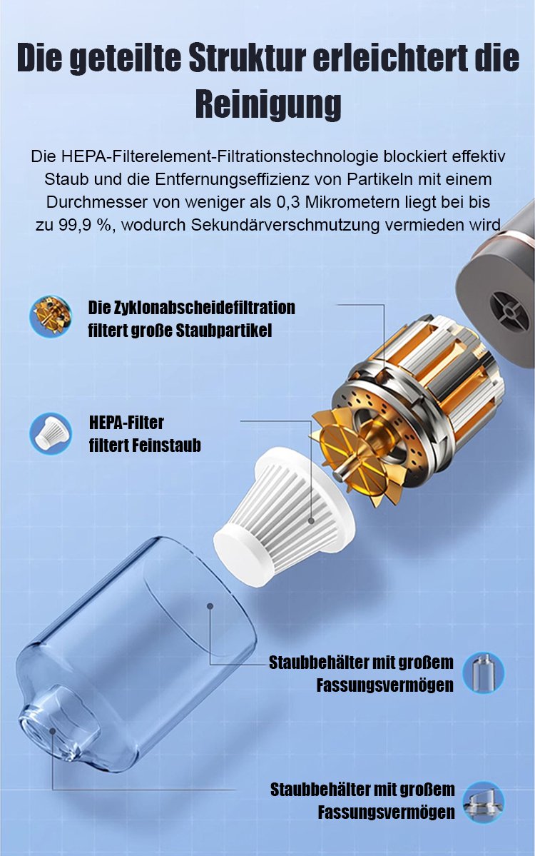 Kompakt und tragbar, mit kraftvoller Saugleistung – so einfach kann Sauberkeit sein!