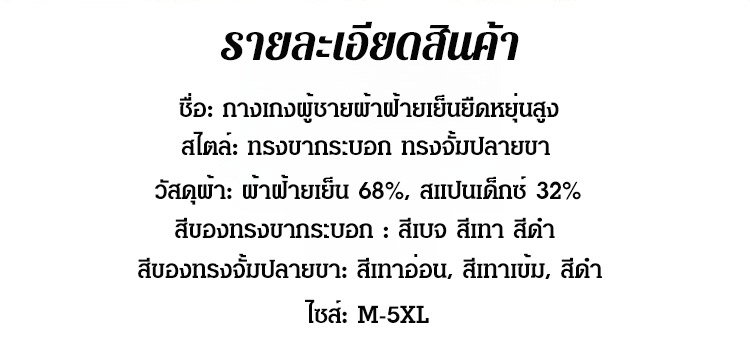 กางเกงชาย ผ้าไหมเย็น ยืดหยุ่นสูง