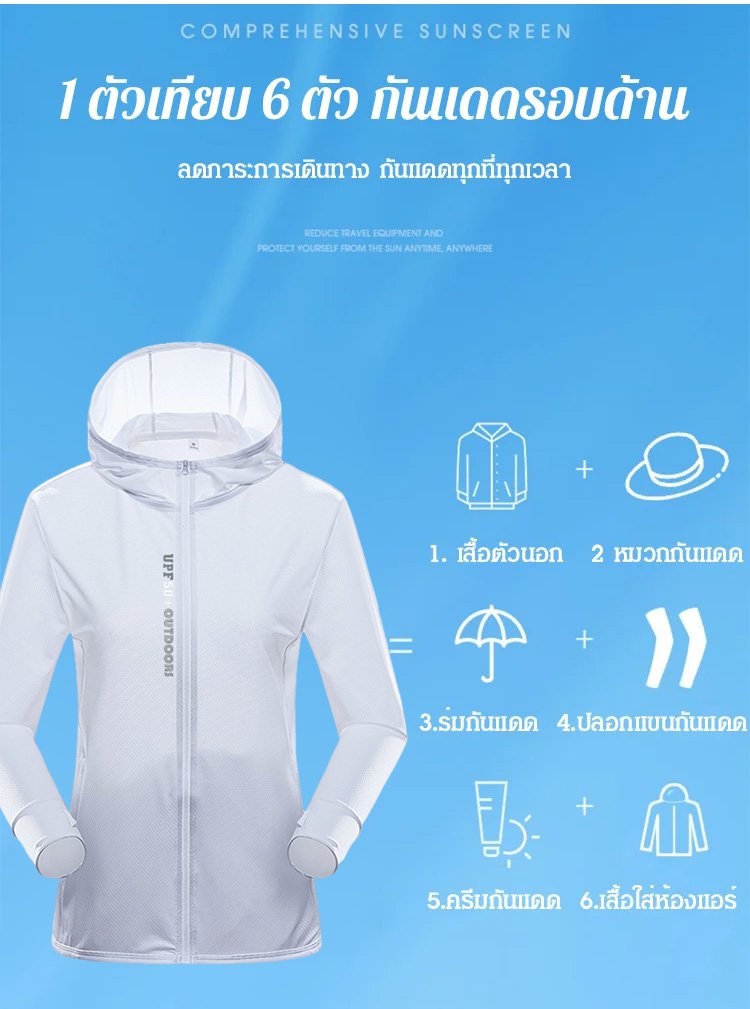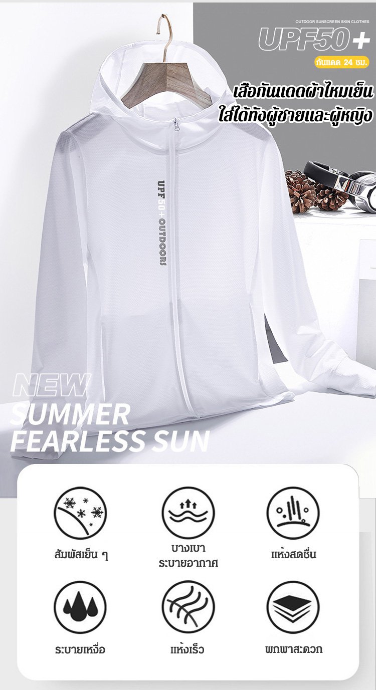 เสื้อกันแดดผ้าไหมเย็น UPF50+ ใส่ได้ทั้งผู้ชายและผู้หญิง